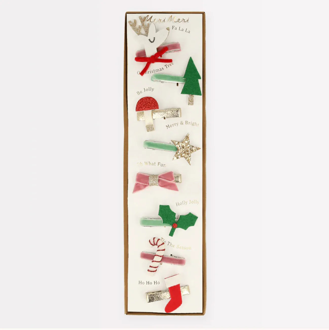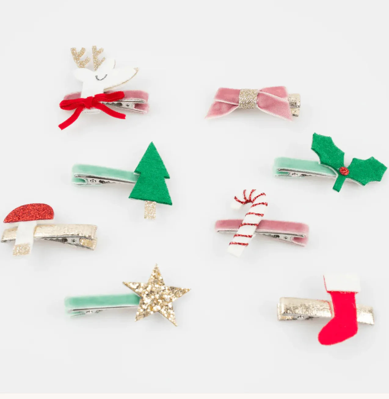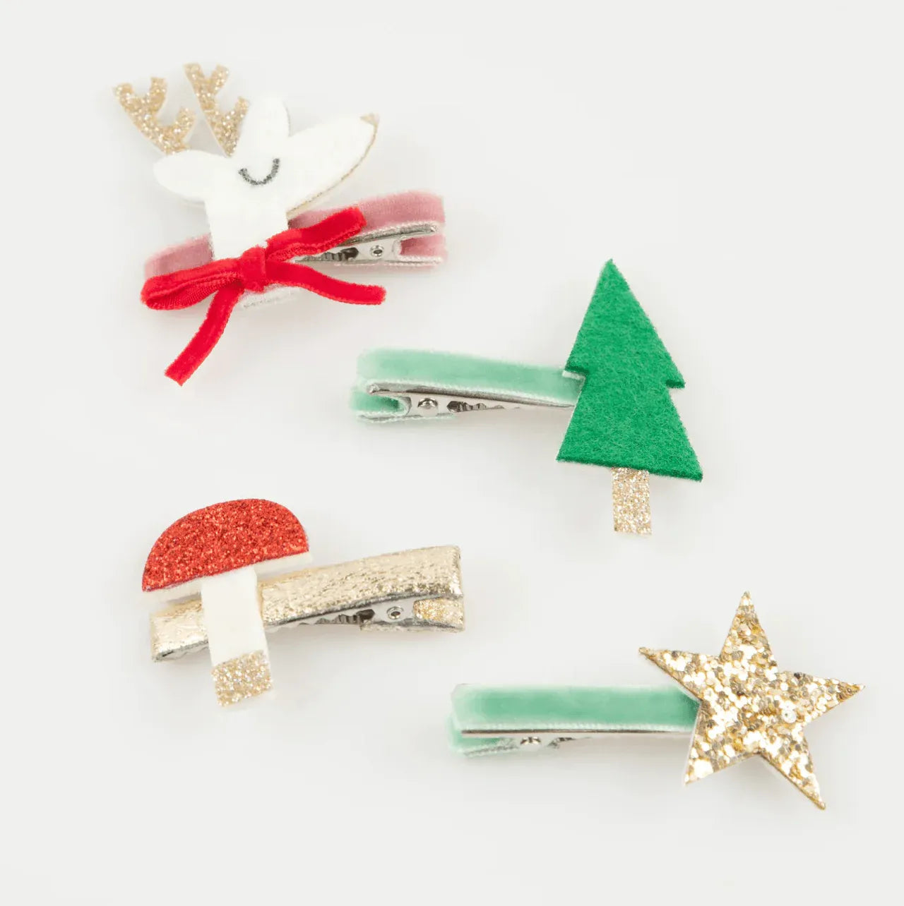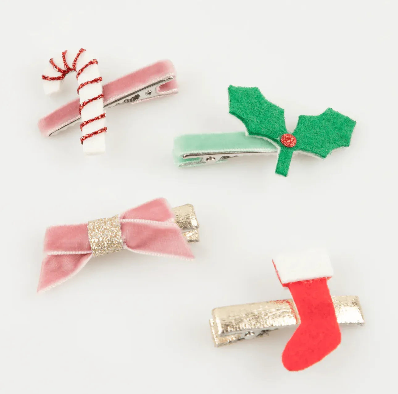 You'll certainly look merry and bright with our luxurious Christmas hair clips! They're beautifully crafted with felt, velvet ribbons and glitter fabrics, and make the most wonderful gift. Perfect to pop into a Christmas stocking, or festive party bags.