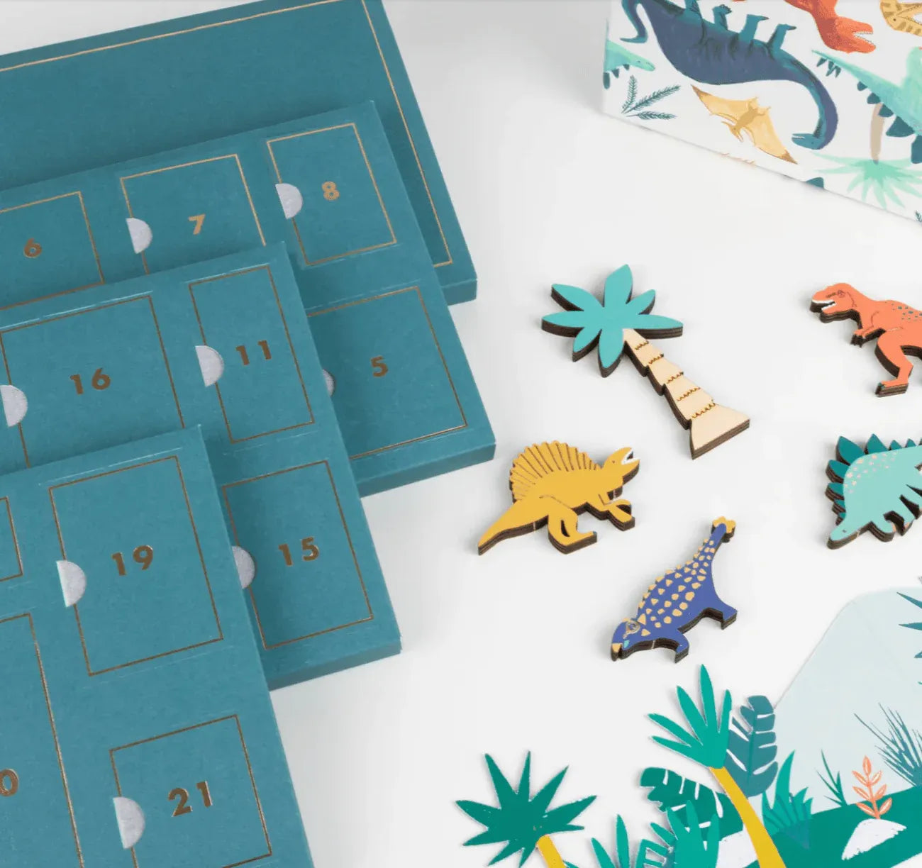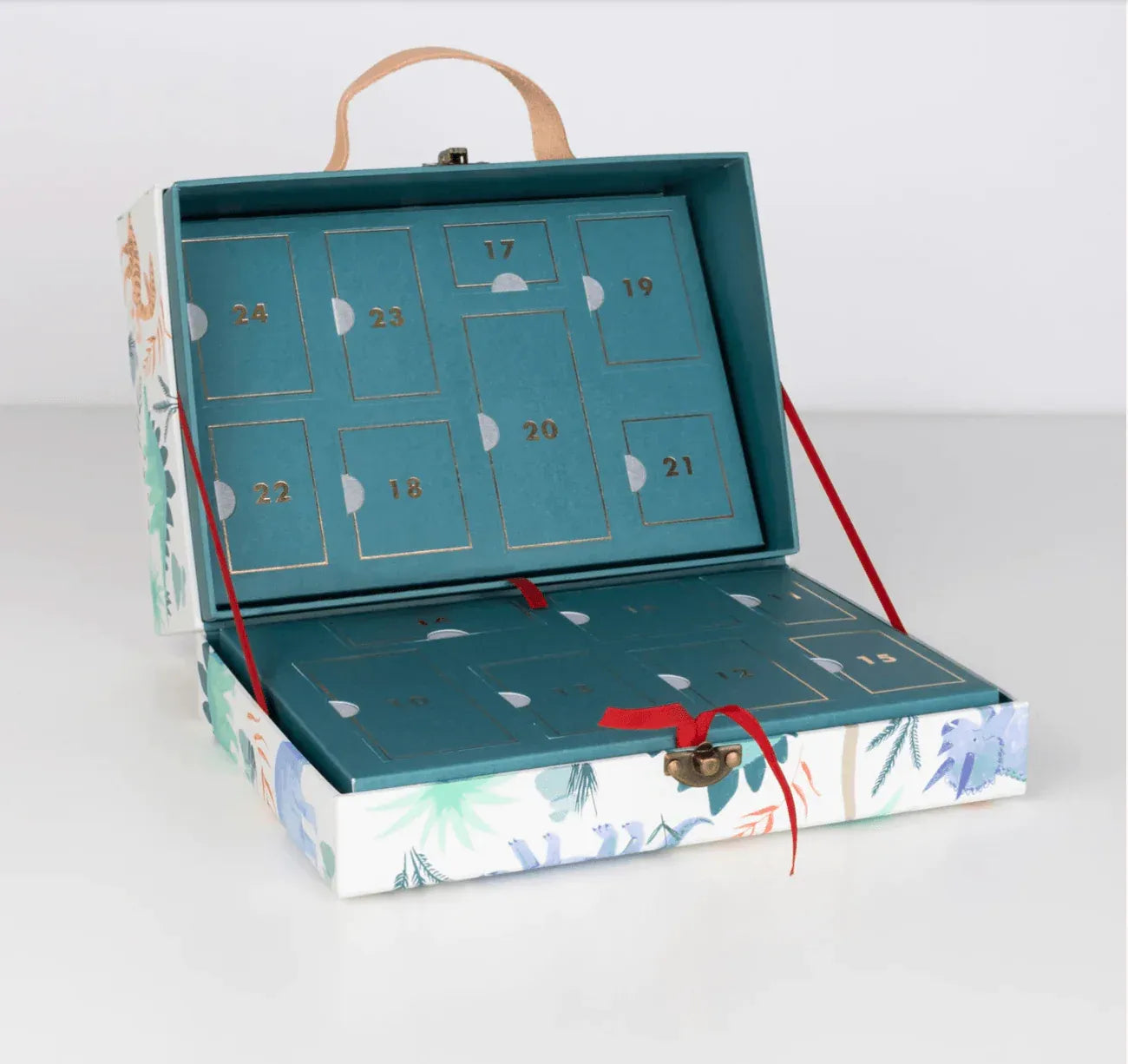 Dino lovers will absolutely adore this advent calendar - a gift to play with over Christmas and for years afterwards. It contains brightly coloured wooden dinosaurs and foliage, and a cardboard scene. When playtime is done, all the pieces can be safely stored in the suitcase printed with a delightful dinosaur design.