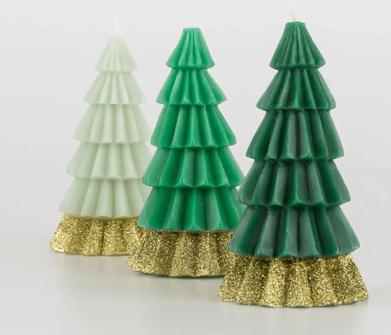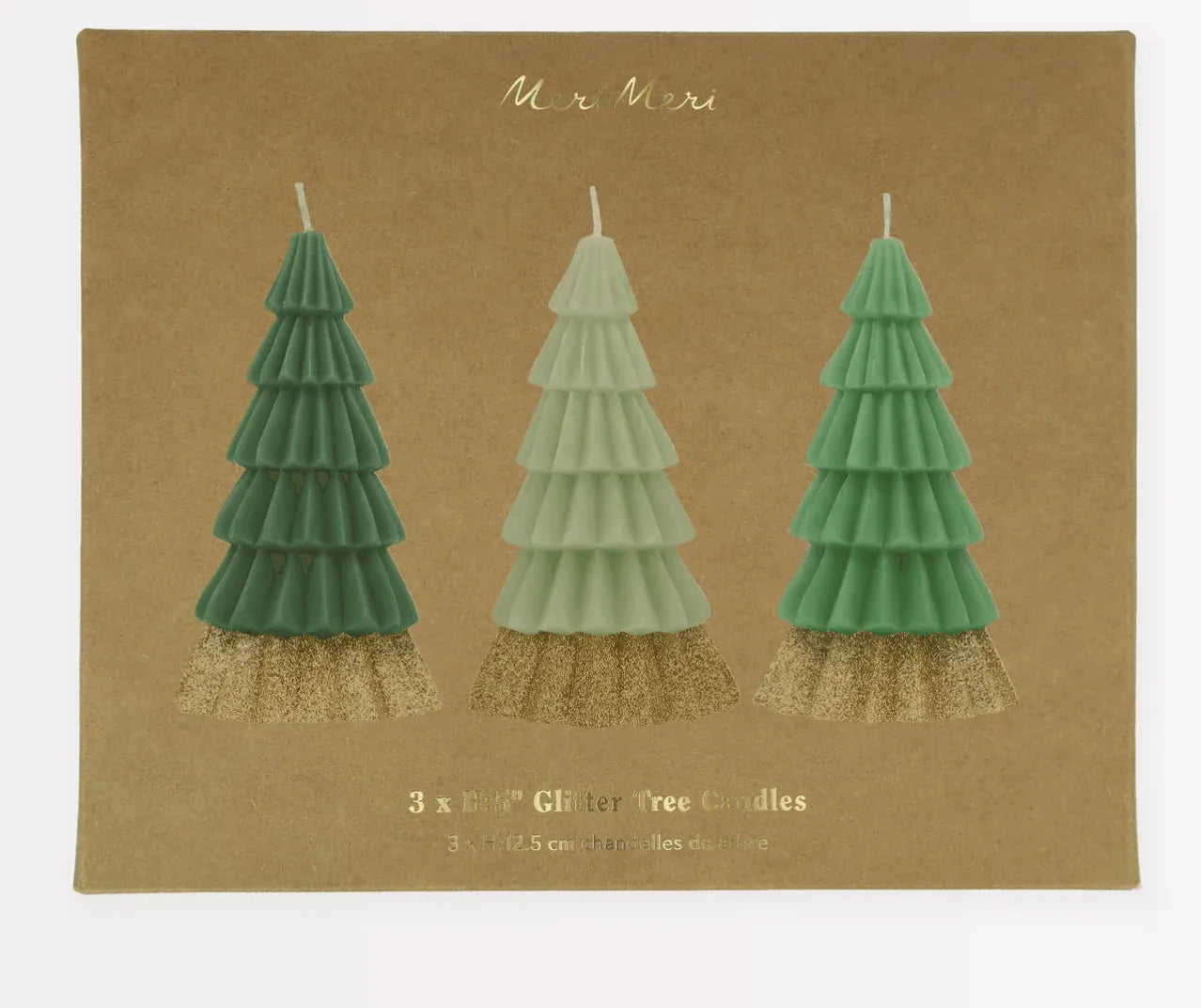 We've got super creative with candles for Christmas – and just know you'll love our statement designs! The combination of the green trees, beautifully finished with a gold glitter base, will look festive fantastic on your party table or mantel. Packaged with shredded kraft paper, they make a fabulous host gift or present for a candle-loving friend.