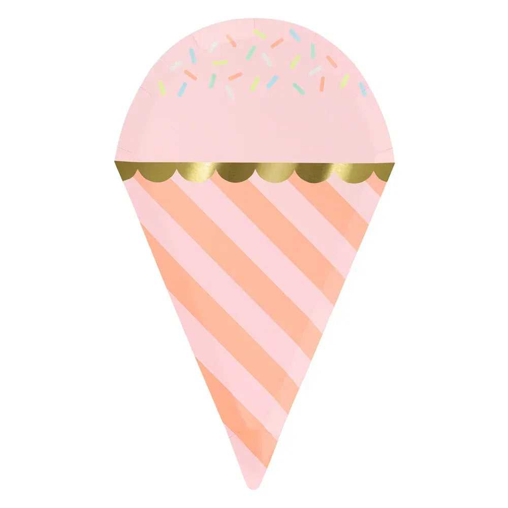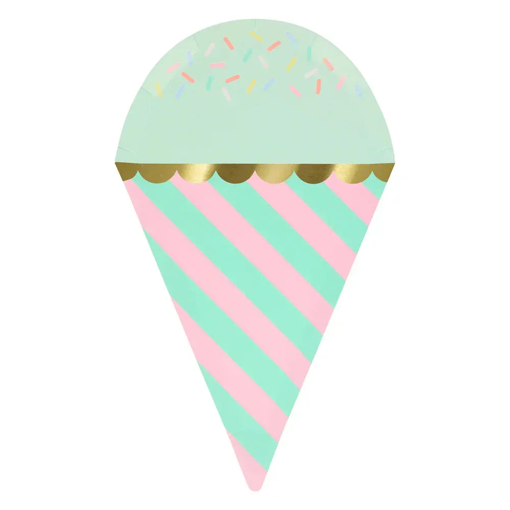 Infuse your party table with the carefree spirit of summer using this playful ice creamy party set, for 8 people. The fashion-forward striped designs, gleaming gold foil accents and sprinkles of color make this set perfect for everything from birthday bashes to BBQs, picnics, beach soirées, school holiday get-togethers or retro carnival-inspired gatherings. Included are paper plates, napkins, cups, ice cream tubs and spoons, and a honeycomb garland. Reuse the garland time and time again to add a cool touch to any celebration.
