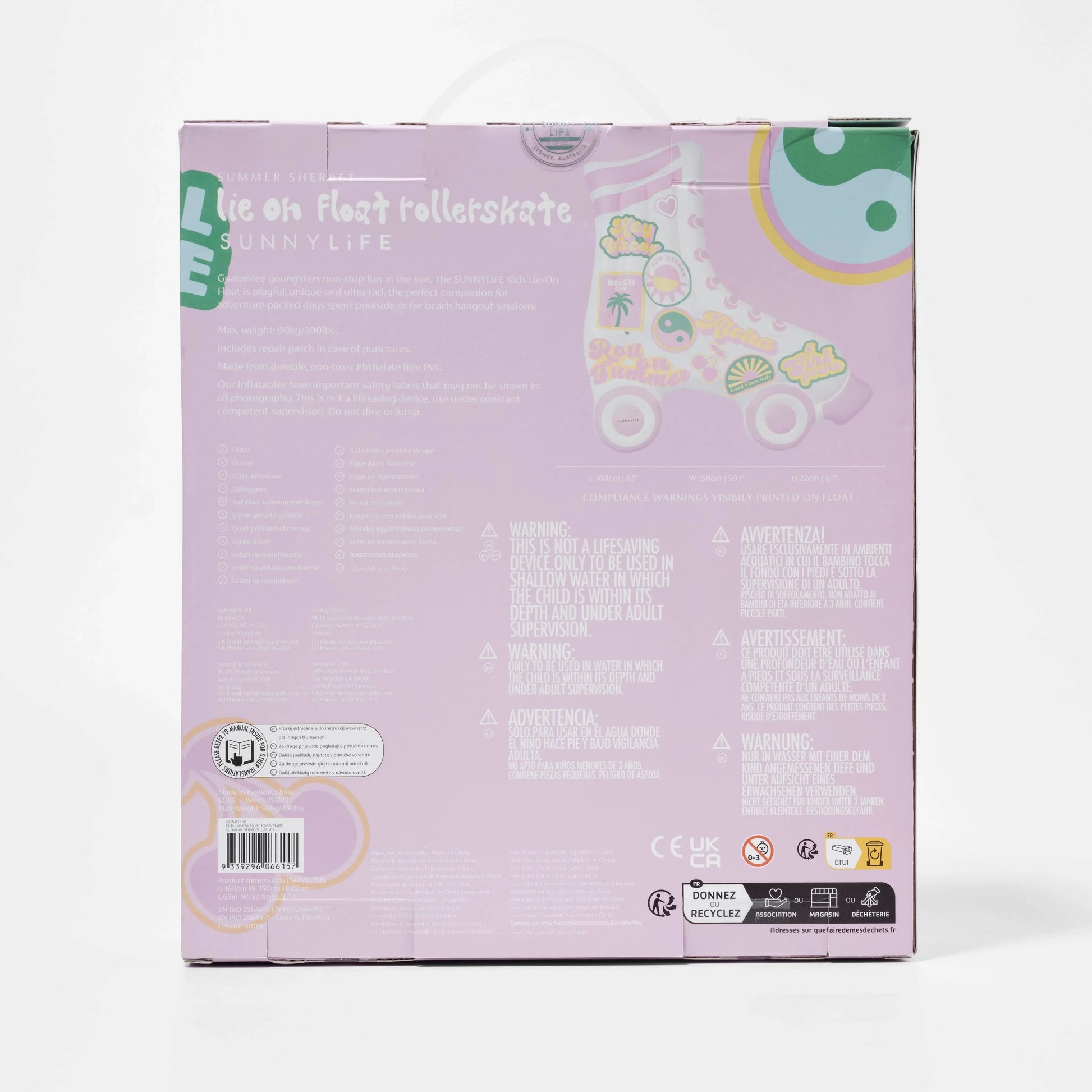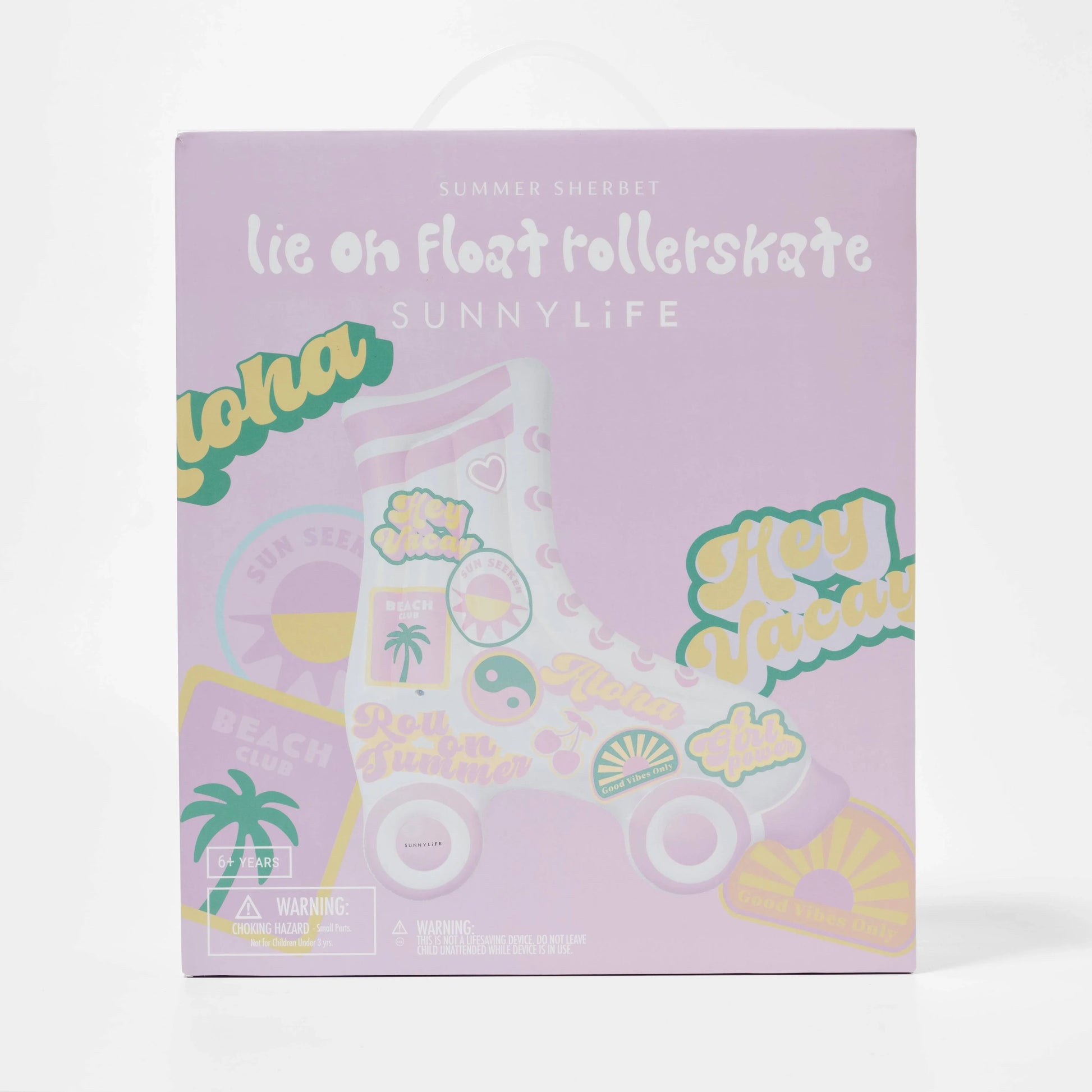 Guarantee youngsters non-stop fun in the sun. The Roller-skate Summer Sherbet Kids Lie-On Float is playful, unique, and sun kissed, the perfect companion for poolside and beach hangout sessions. Made for maximum relaxation and enjoyment, kids of all ages will love to make a splash with this unapologetically stylish inflatable. Turn heads and ensure this season is one to remember with its trendy roller-skate shaped design, Californian girl graphics, and confectionery-coloured hues.