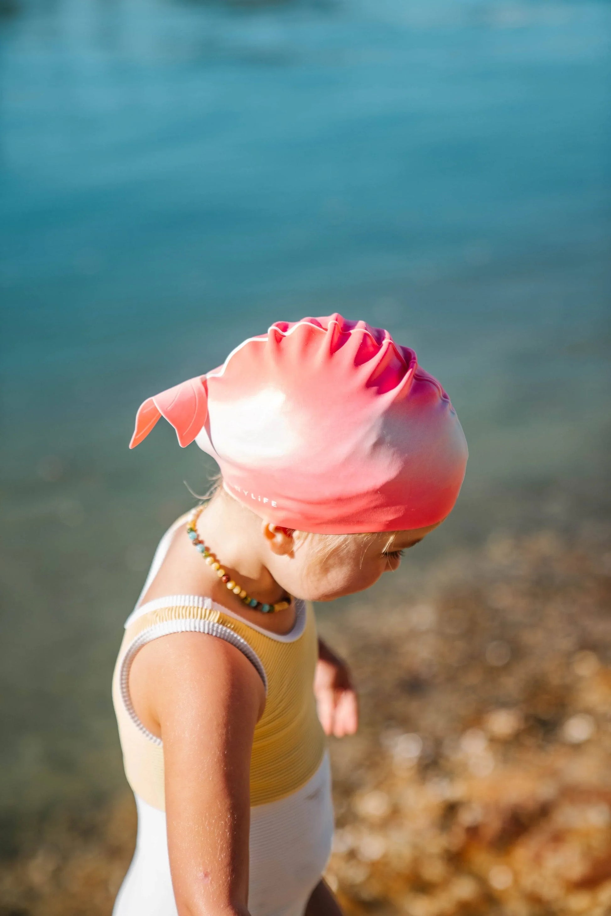 Adventure awaits with summer’s cutest swimming accessories. The Melody the Mermaid Swimming Cap is charming as well as practical and an essential for underwater play. Made with durable silicon, it's the ultimate solution for keeping your child's hair dry and out of their face while they conquer the pool. Boost water confidence, make a splash, and experience the best of summer with its 3D silicone mermaid tail and sweet pink and cream hue.