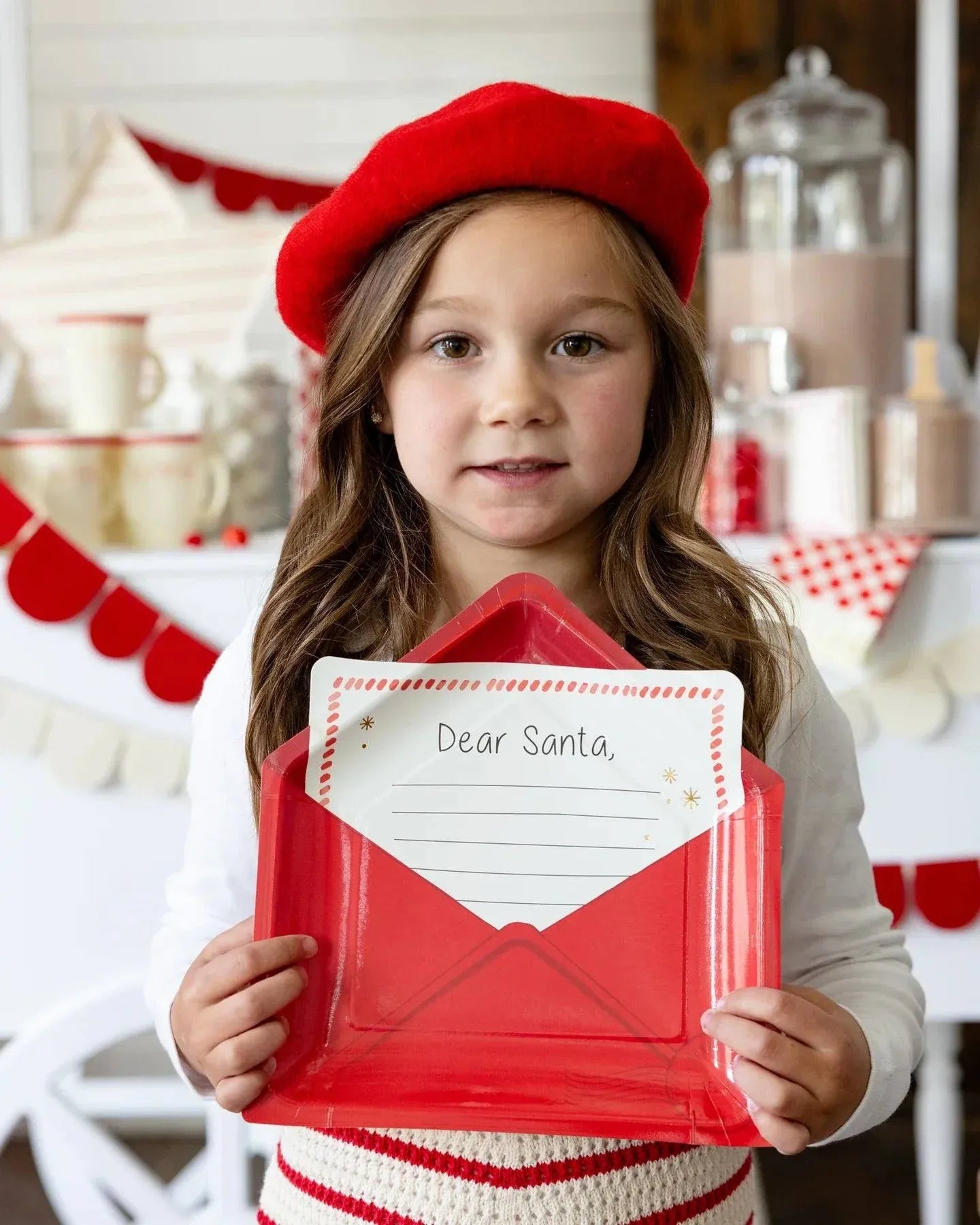 Add a touch of whimsy to your holiday table with our Letter to Santa paper plates depicting a "Dear Santa" letter in an envelope. Perfect for kids and adults alike, these plates will make every meal feel like a special delivery to the North Pole. Santa-approved design!