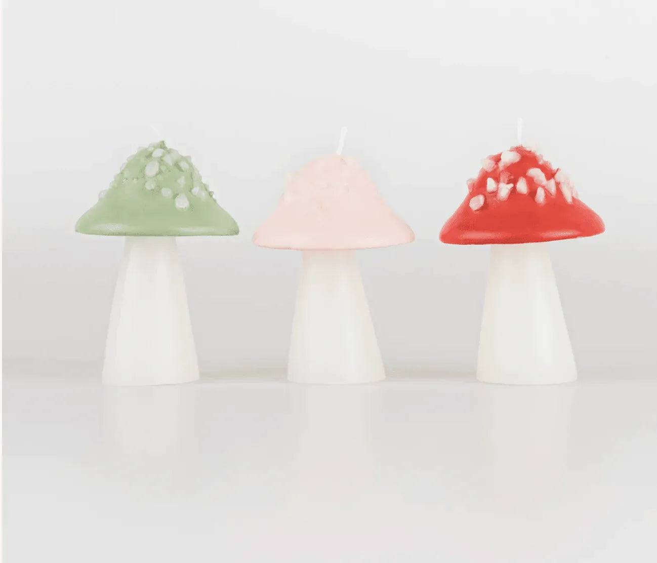 We're delighted mushrooms are having a moment as their wonderful shape is so worthy of fashion fame! This cute candle trio is perfect to light up or decorate a fairy party, or any autumnal or wintry celebration. They make a great host gift too, as are beautifully packaged.