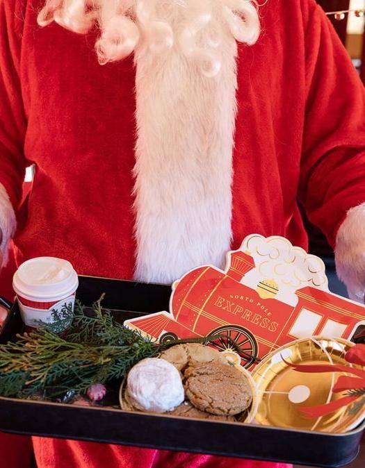 All aboard for Holiday fun with these shaped train plates. Designed as a festive Christmas train shape, these party plates are a merry addition to any Christmas dinner on a train expedition headed to the North Pole. And with glittery gold foil accents, they are sure to put a twinkle in your guests' eyes!