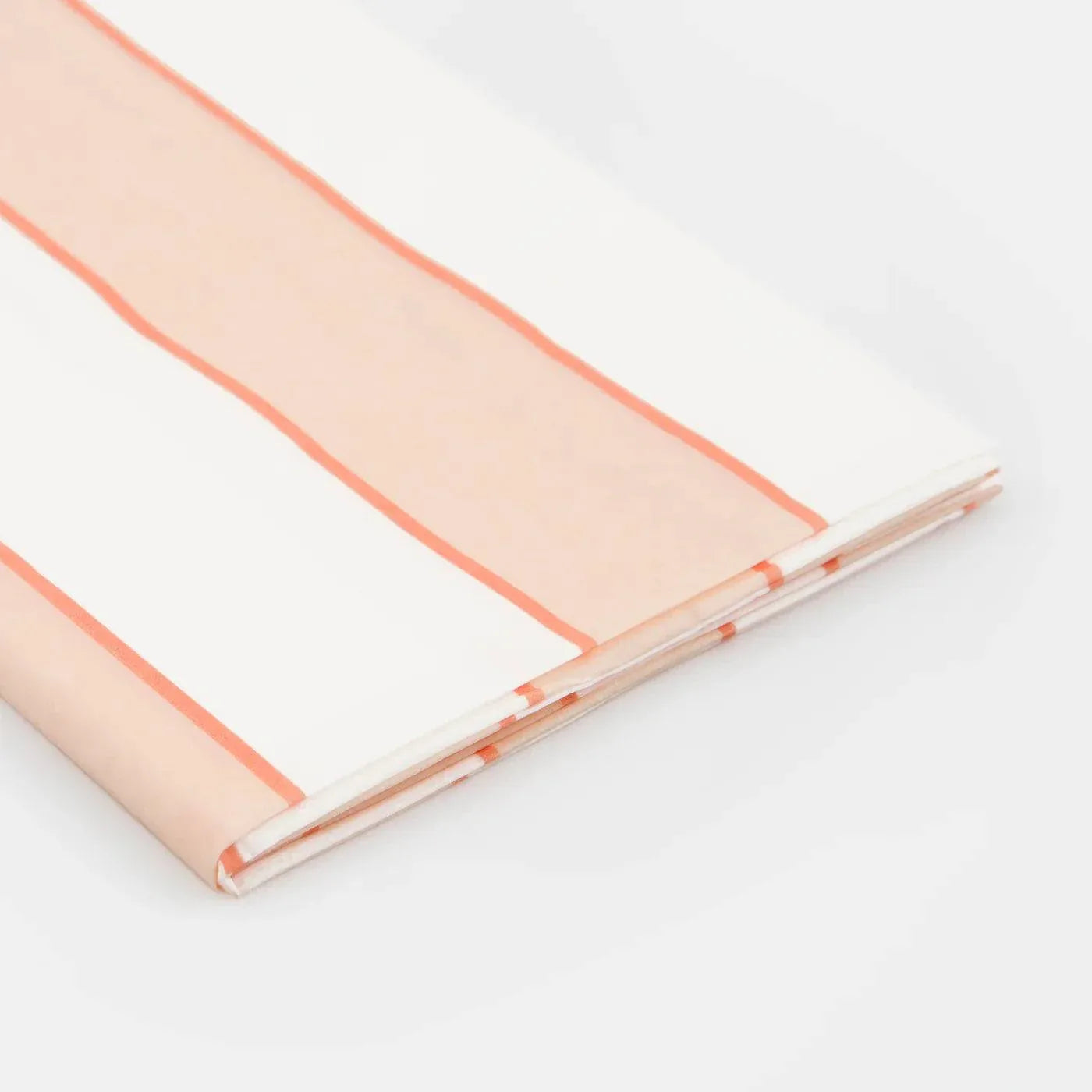 Stripes are timeless and make a statement! Make your party table look instantly fresh with our peach stripe tablecloth. It's ideal for a ballet party, princess party or anywhere you want a peach perfection colour theme.