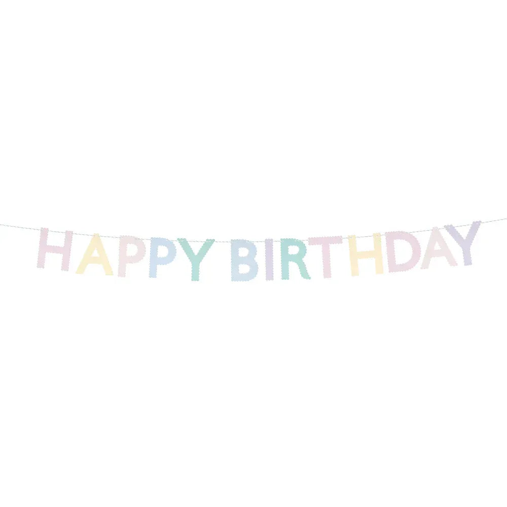 Add a pastel perfect look to a special birthday with this statement scalloped garland. Hang it on the party table, wall, doorway, porch or mantel for a dramatic effect. Pack away after use, in the presentation envelope, ready to celebrate another memorable moment soon.