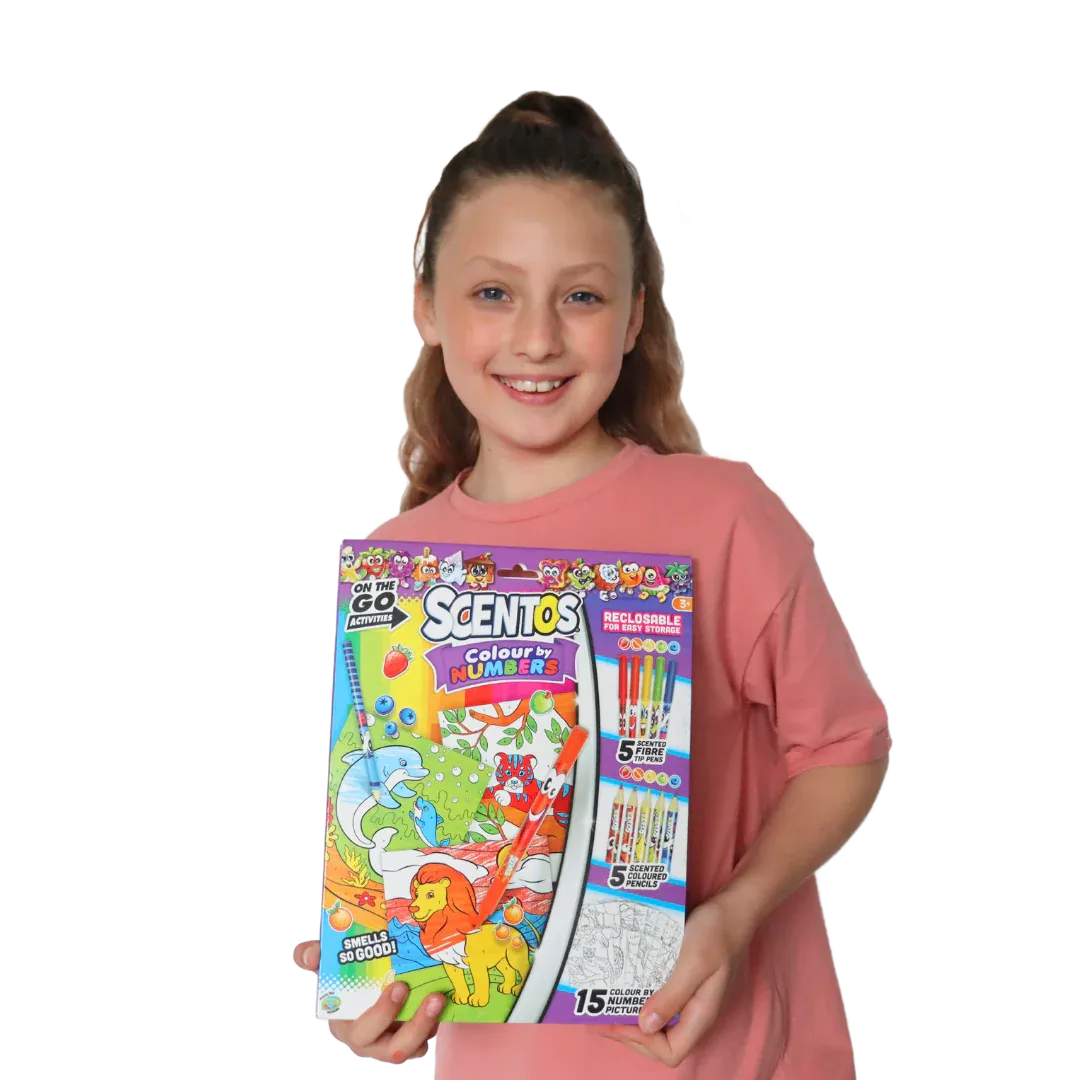 Scented activity fun. Colour by Numbers activity. Includes 15 colour by numbers pictures, 5 scented fibre tip pens, 5 scented colouring pencils, The markers and pencils are scented with fragrances like banana, apple, blueberry, orange and strawberry and are completely safe and non-toxic for use by children. Suitable for kids aged 3 years and above, this set is available in a reclosable pack for easy storage and on the go fun.
