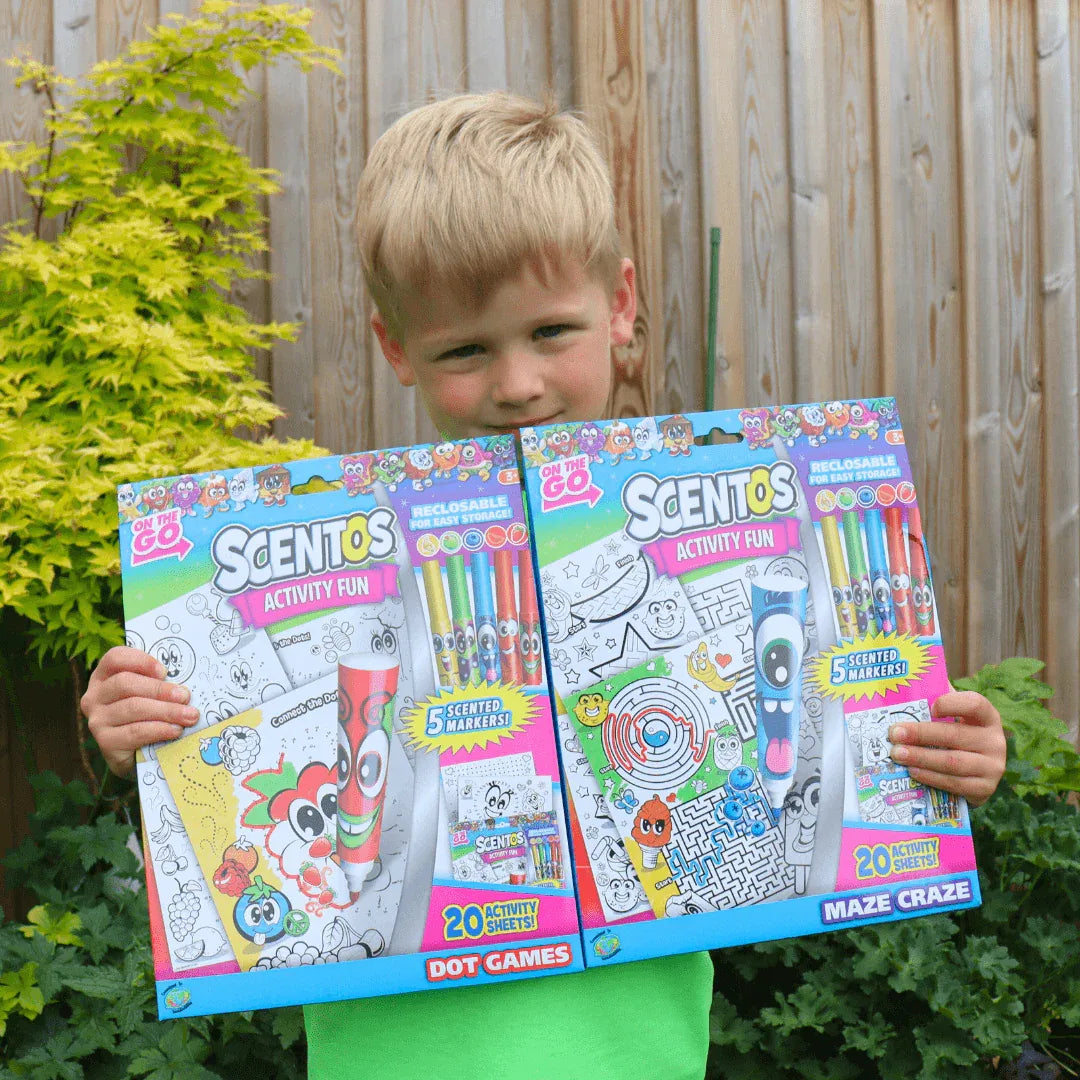 If you have young kids who get bored on long car rides or need some vacation games that pack flat or tuck into a carry-on easily? This Scentos On-The-Go activity and coloring set comes with 20 activity pages and 5 deliciously fruity-scented Scentos markers in a resealable package. Make your way through the maze games and then color them to have some coloring activity fun. The markers are scented with fragrances like banana, apple, blueberry, orange and strawberry and are completely safe and non-toxic for use by children.