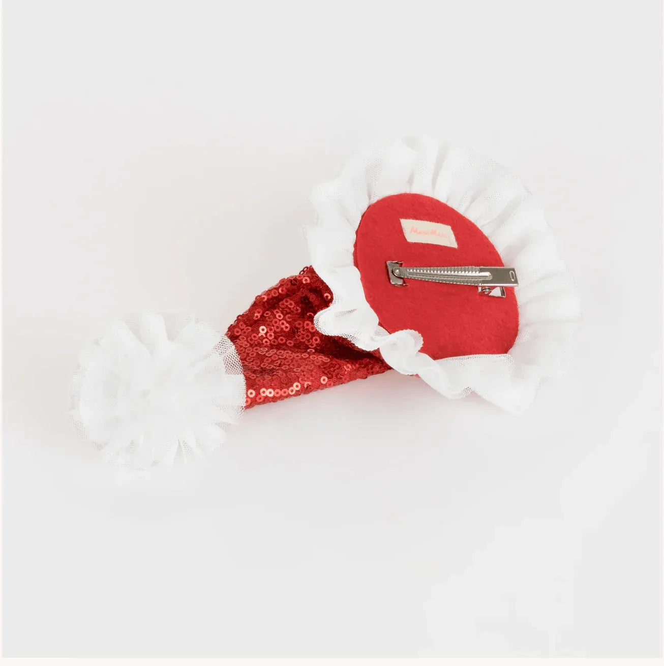 Ho, ho, ho! Our Santa hat hair clip is perfect if you want a festive look without having to wear a party hat. It's merry and bright, and a stylish gift for a special someone who loves hair accessories and sequins.